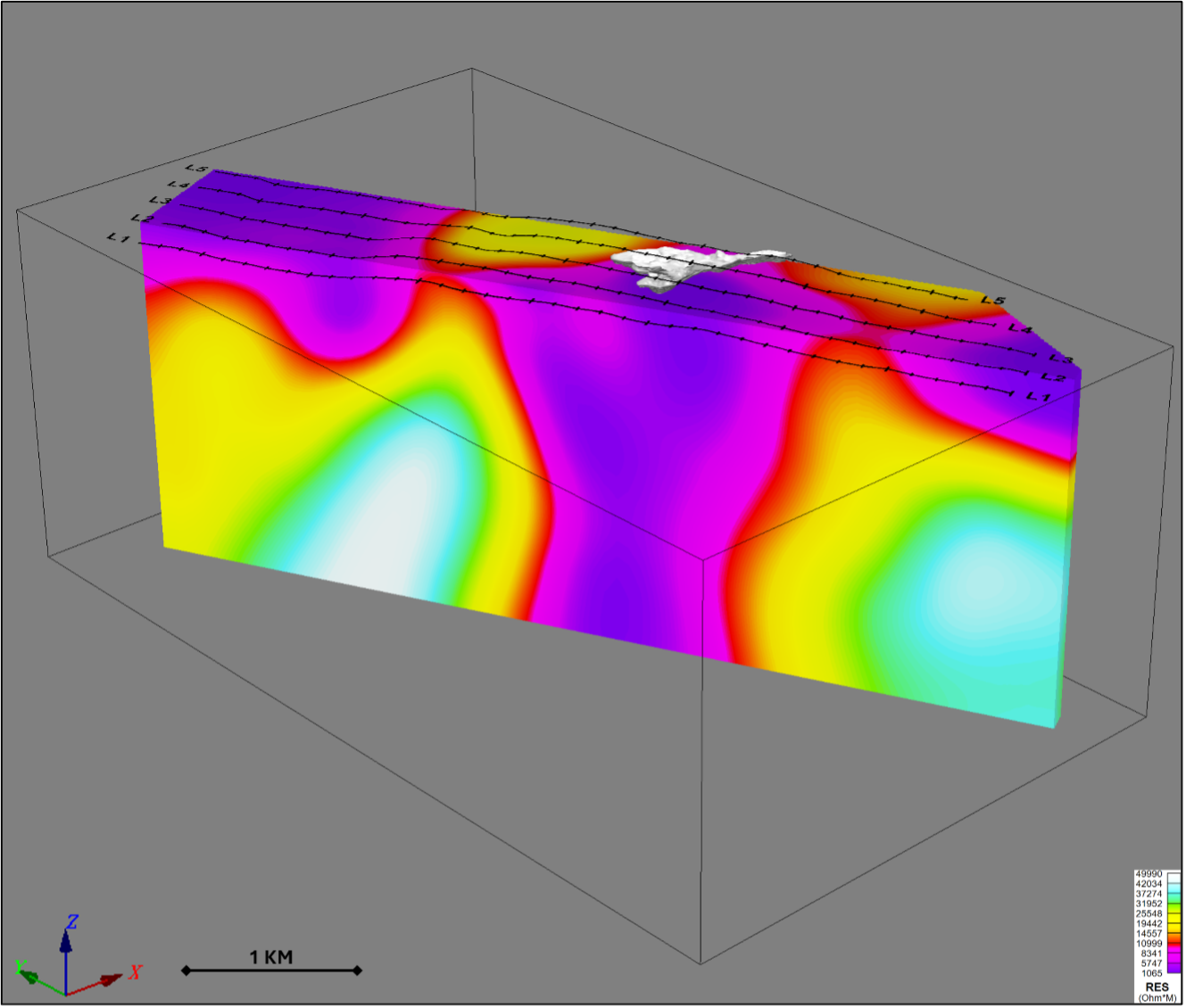 Geophysical Survey: Deep-sensing IP and MT surveys returned compelling subsurface features that suggest the presence of a buried copper-gold porphyry system.