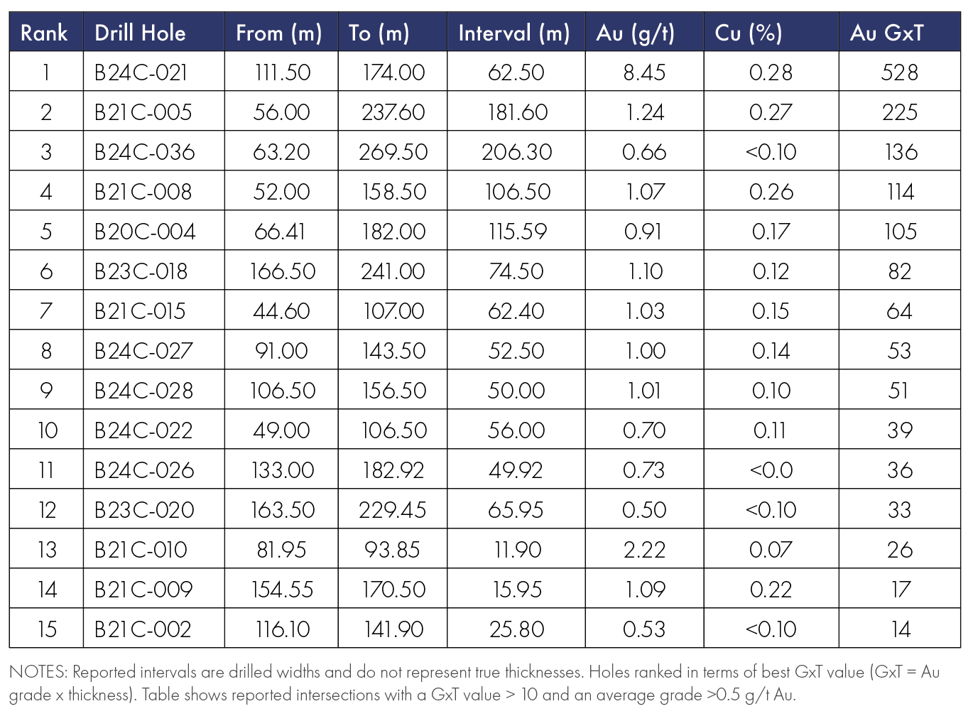 Hole B24C-016X: Extended to 658 meters, revealing elevated molybdenum levels of up to 1,320 ppm, suggesting proximity to a porphyry system.